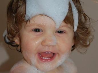 Mit meinen zarten 18 Monaten bin ich aber schon ein ganz wilder kleiner Feger. Wie man hier sieht bin ich gar nicht wasserscheu, ganz im Gegenteil, baden und schwimmen gehören zu meinen Lieblingsspielen. Außerdem kletter ich gerne und spiele für mein Leben gern draußen im Garten, denn das ist viel schöner als im Zimmer zu hocken ...